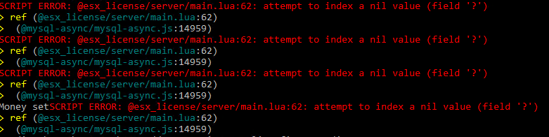 SCRIPT ERROR: @esx_license/server/main.lua:62: attempt to index a nil value (field ‘?’)