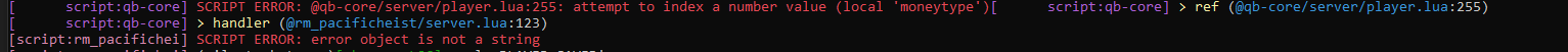 As mentioned by the server log, the error is in the rm_pacificheist script, specifically line 21 of the server.lua file. The error is that you are treating the QBCore player object like the ESX object, when accessing the job, but unlike xPlayer = ESX.GetPlayerFromId(source) which then has xPlayer.job.name, the QBCore player has their job, etc. under a PlayerData property.