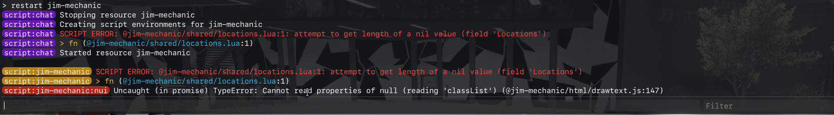I have jim-bridge, mechanic and payments right now, And has everything else in needs in qb plus got everything in my inventory and items correct but locations aren’t working even if i didn’t even do anything really all i did was try putting where i want my stash and then i get this message. If anyone could help would appreciate that.