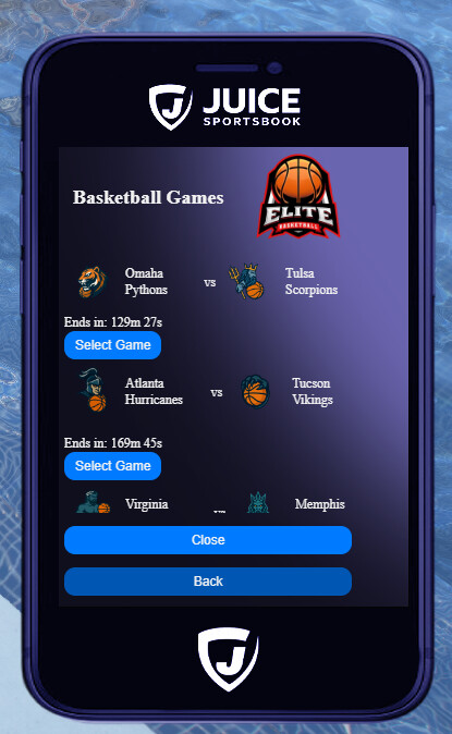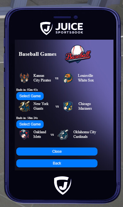 In-game Betting Phone UI for browsing games & placing bets
