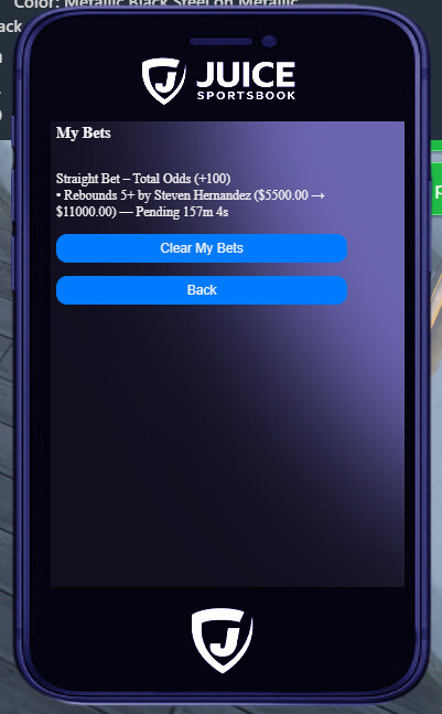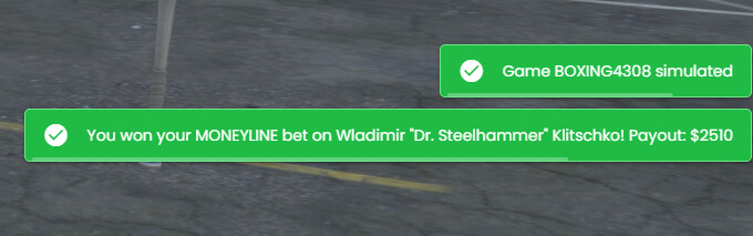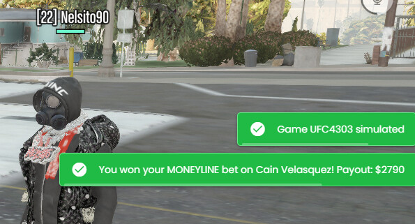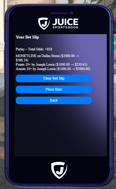 Players can place bets on simulated games — moneylines, spreads, parlays, and player props — all without leaving the RP experience.