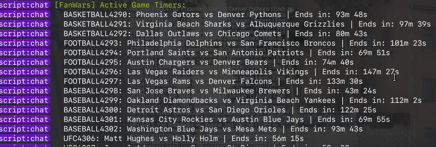 /simulategame [gameId]– Instantly simulate/finish a specific game/fanwarsgames– View all active games + timers (per sport)- Optional logging to track who is using admin tools (configurable)
