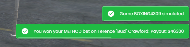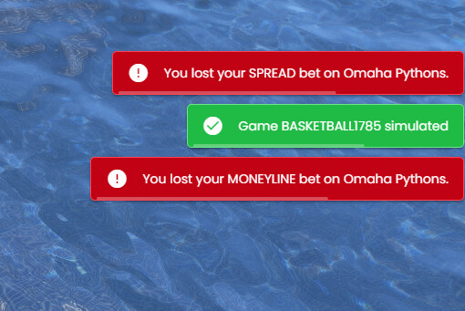 So for example. /simulategame BASKETBALL4290 would simulate the Phoenix Gators vs Denver Pythons game. Or you could wait until it Ends in: 93m 48s. Once that timer finishes the results /stats for the game will be pushed to the server and the active bets on that game will settle as a winner or loser.