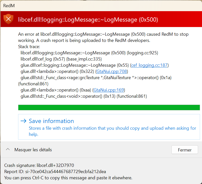 What did you do to get this issue? Restart my PC, watch forum, ask to the admins of the serv, uninstall RedM and reinstall