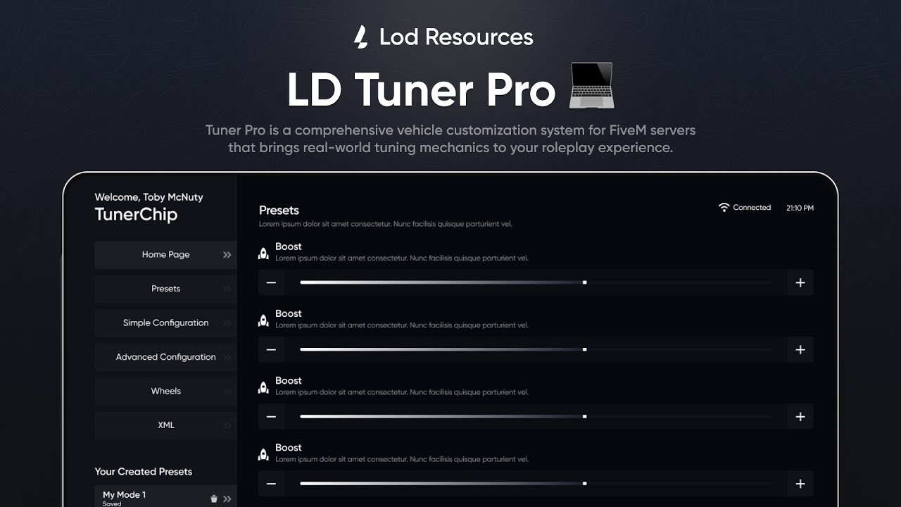 Tuner Pro is a comprehensive vehicle customization system for FiveM servers that brings real-world tuning mechanics to your roleplay experience. This powerful script allows players to fine-tune every aspect of their vehicle’s performance, from engine output to suspension dynamics, creating truly personalized driving experiences.