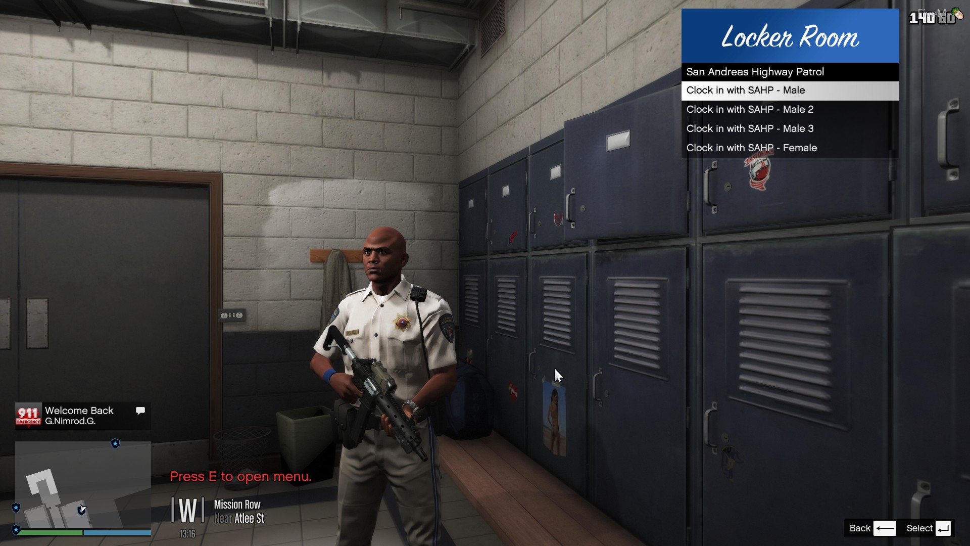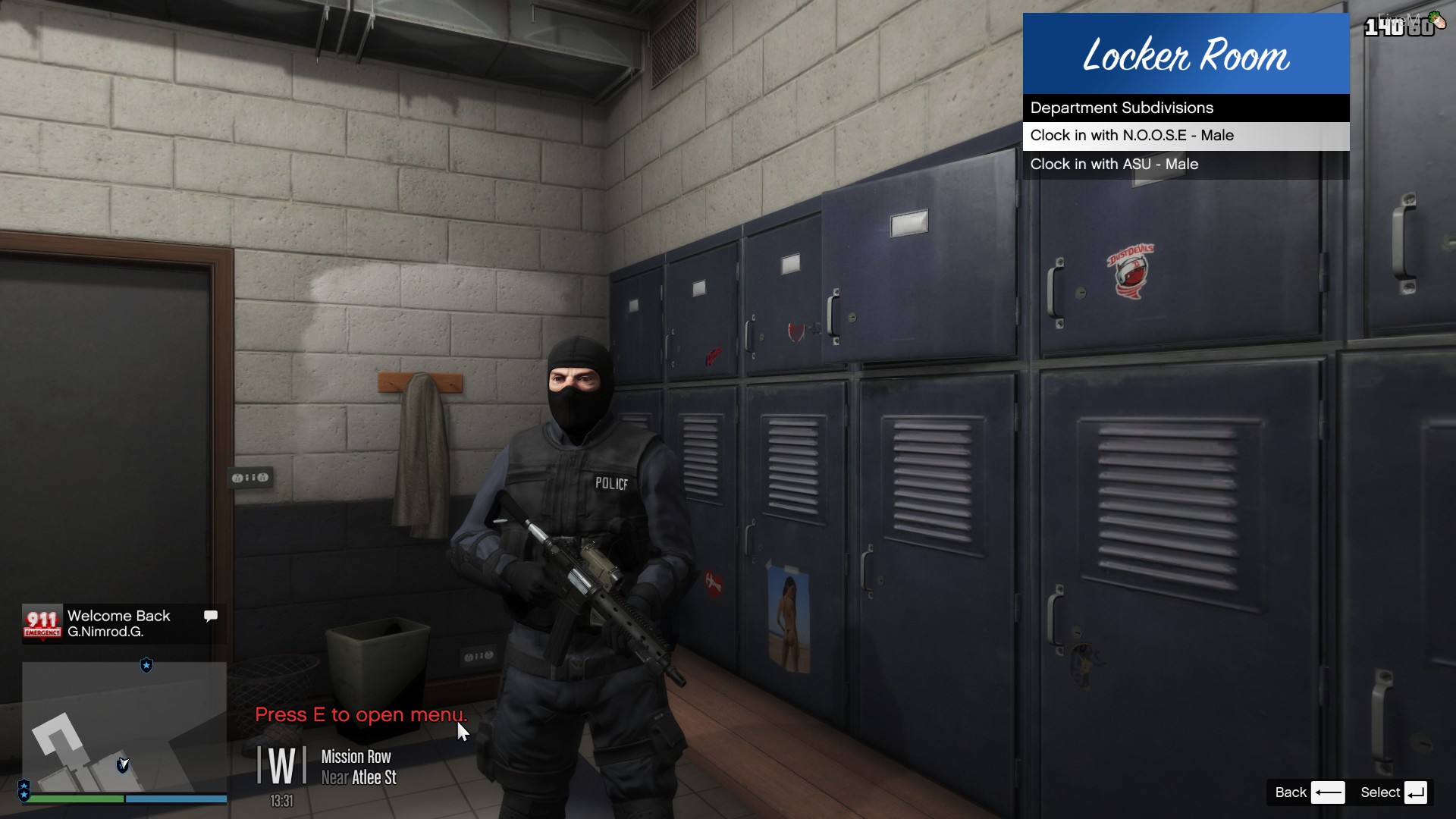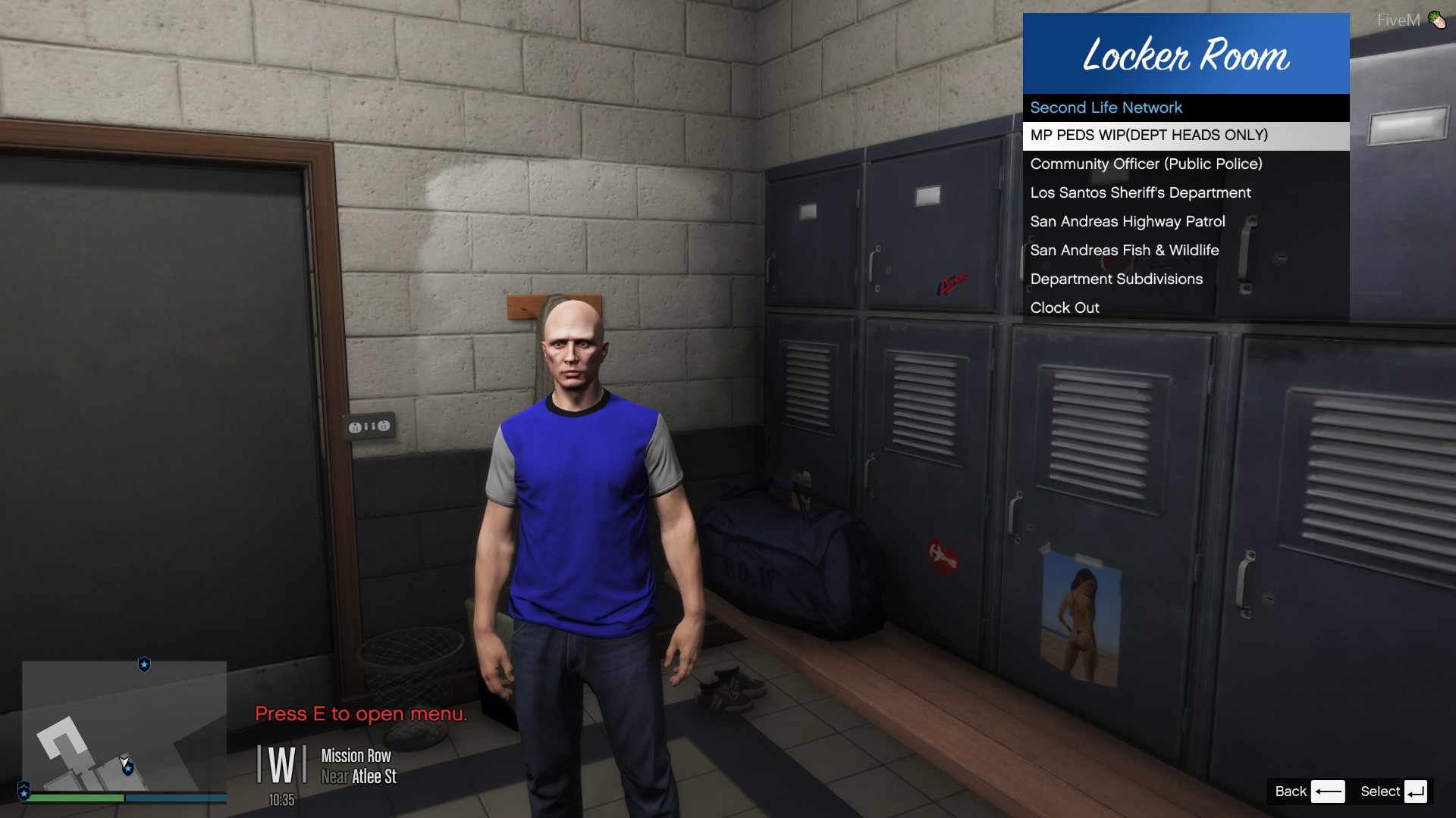 Well, i figured the title would be self explanatory. It’s a clock in menu for police. Go to the blips on map and enter the blip and choose the load out you want.