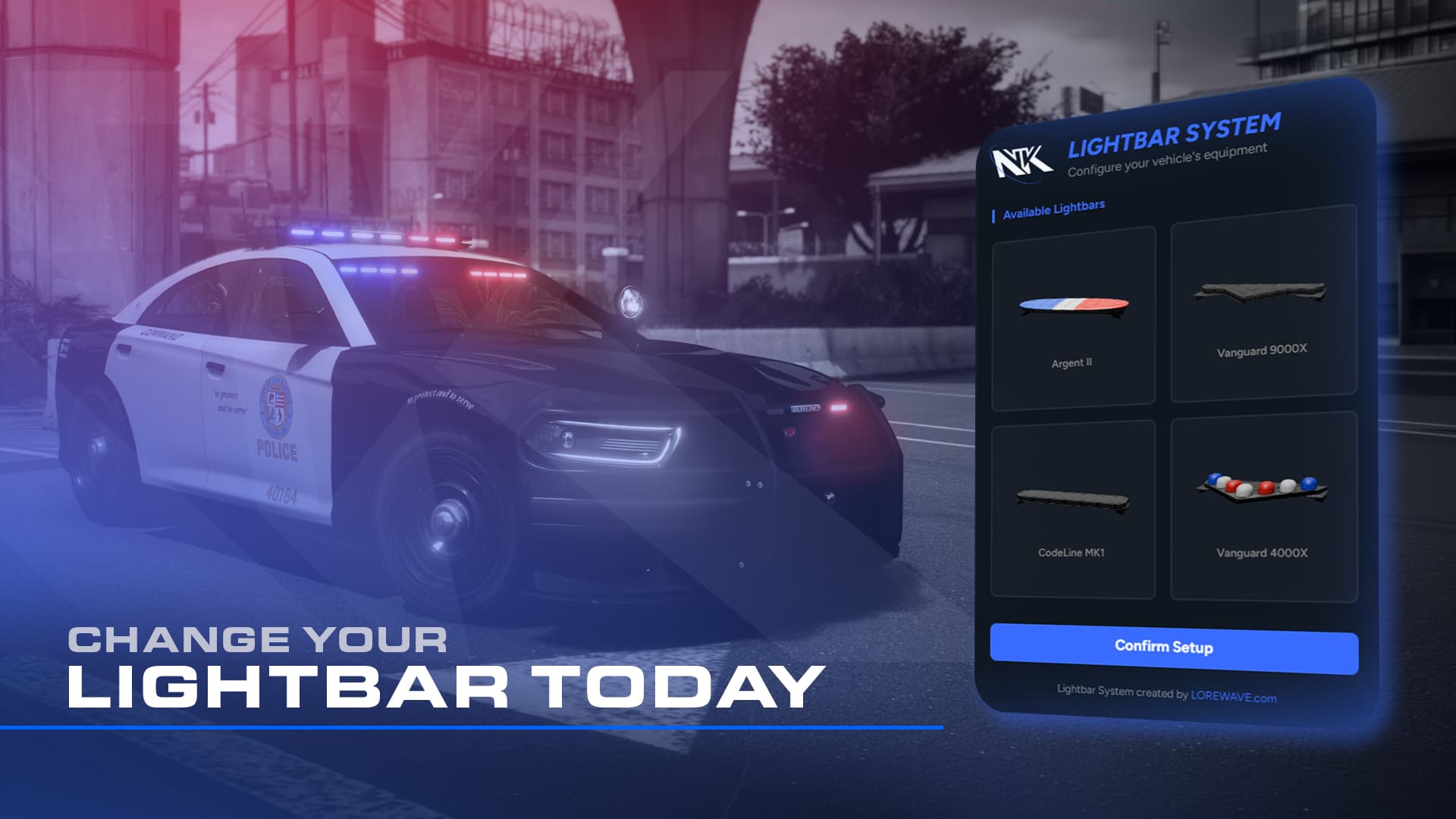 The script currently includes 4 additional lightbars that can be installed on supported vehicles. It works exclusively with vehicles from the Noisiak Vehicles New Series. More lightbars will be added in future updates.