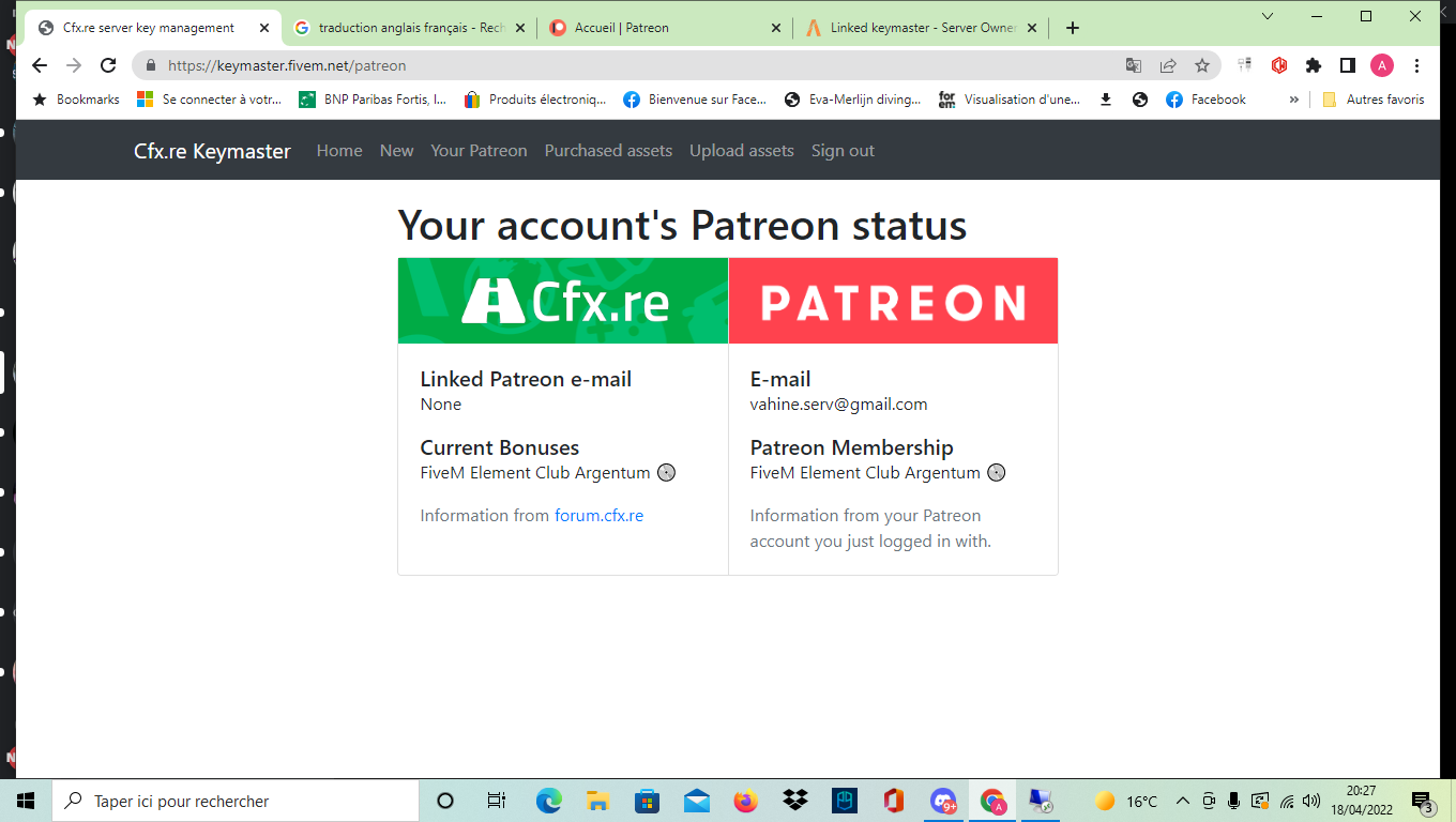 This its my problem i dont why not its linked patreon email with cfx.re , im using the same e mail here and on Patreon, please anyone can help me with this issue 5 days ago