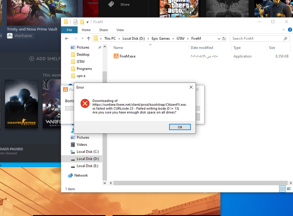 ** RAM:16 - AMD Ryzen 7 3800X /-core processor - Nvidia GeForce GTX 1080 Ti first time downloading it my net crashed and when i start downloading it again this what i get What server did you get this issue on? dint play it yet so CitizenFX crash zip file- CitizenFX.log file- .dmp files/report IDs