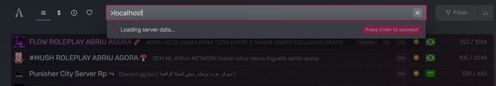 If that doesn’t work, you can just press Play and type >localhost in the bar