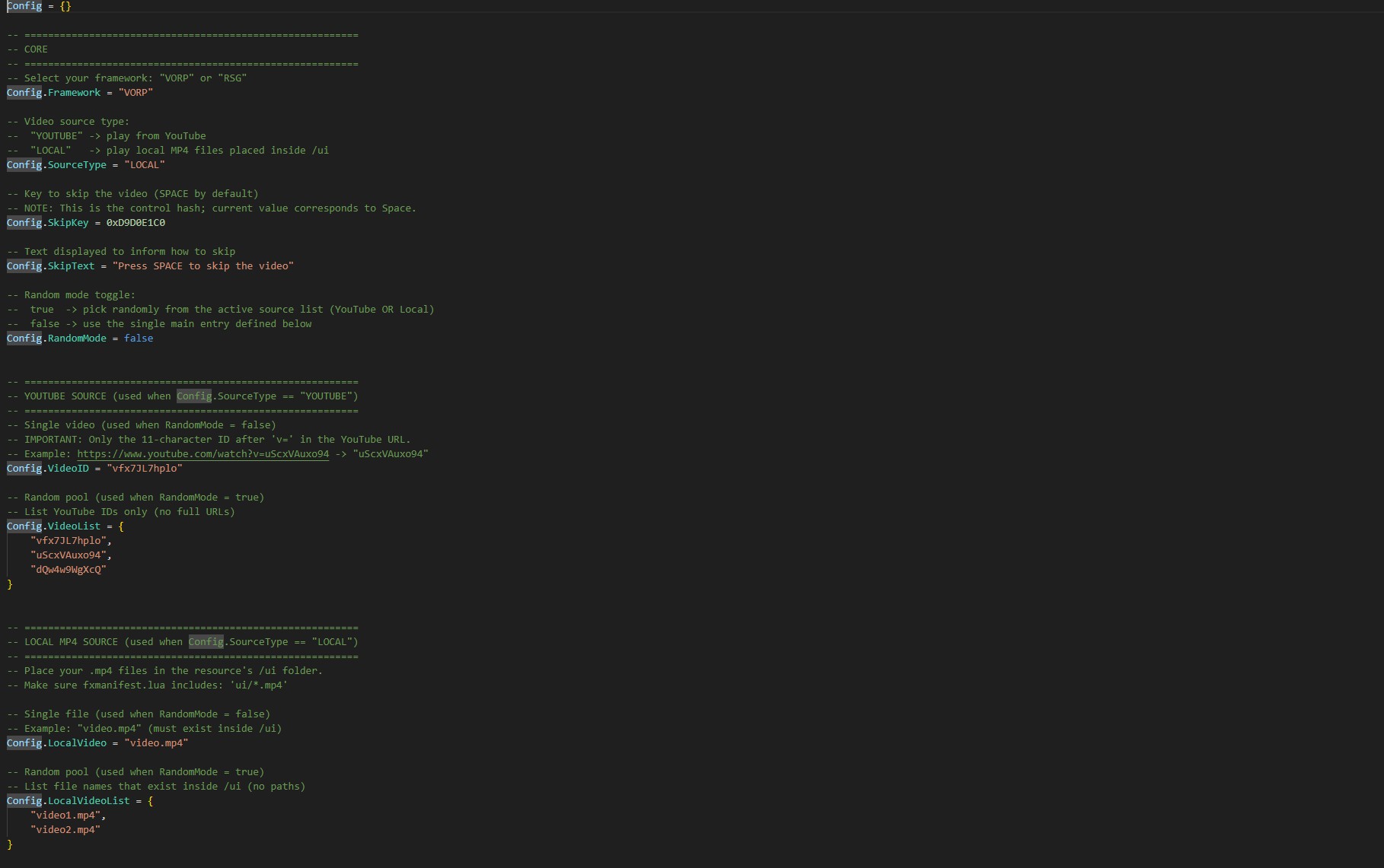 - Simple config file to define video IDs, keys, and text