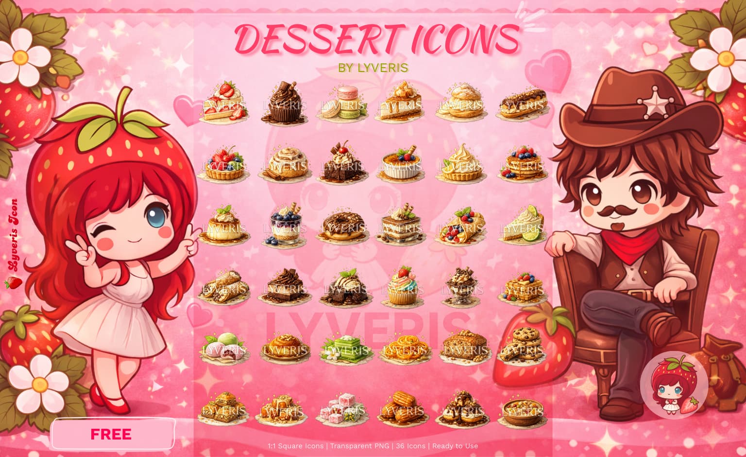 This pack includes a set of 36 unique Dessert Inventory Icons designed to give your inventory UI a more colorful, warm, and appetizing look while remaining clean and easy to read in-game.