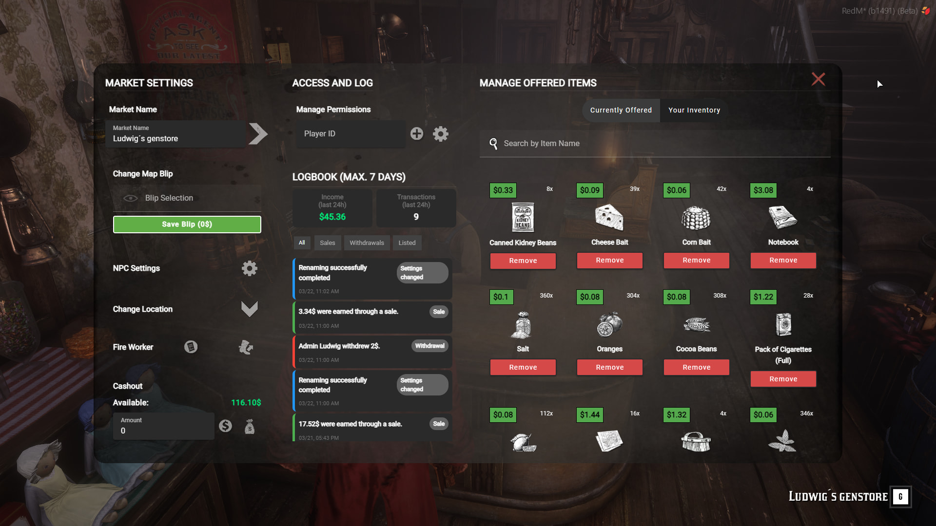 - Delete / Pass on – Delete your Market or pass it to another Player