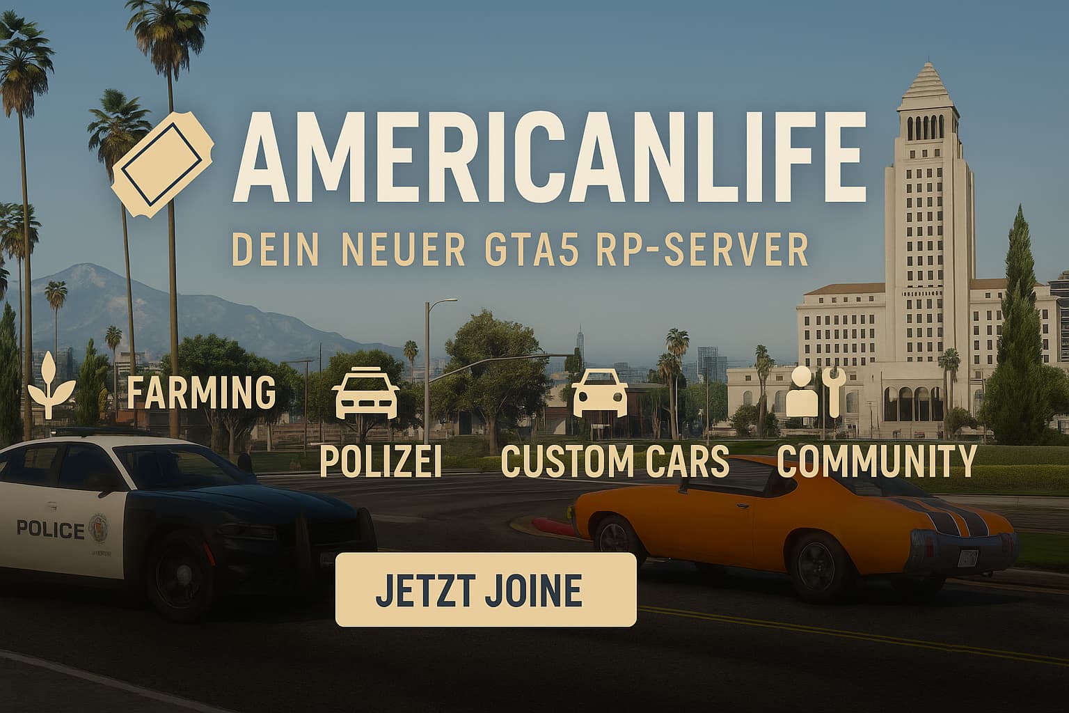 wir haben in den letzten Wochen unseren eigenen FiveM-Server aufgebaut: AmericanLife.