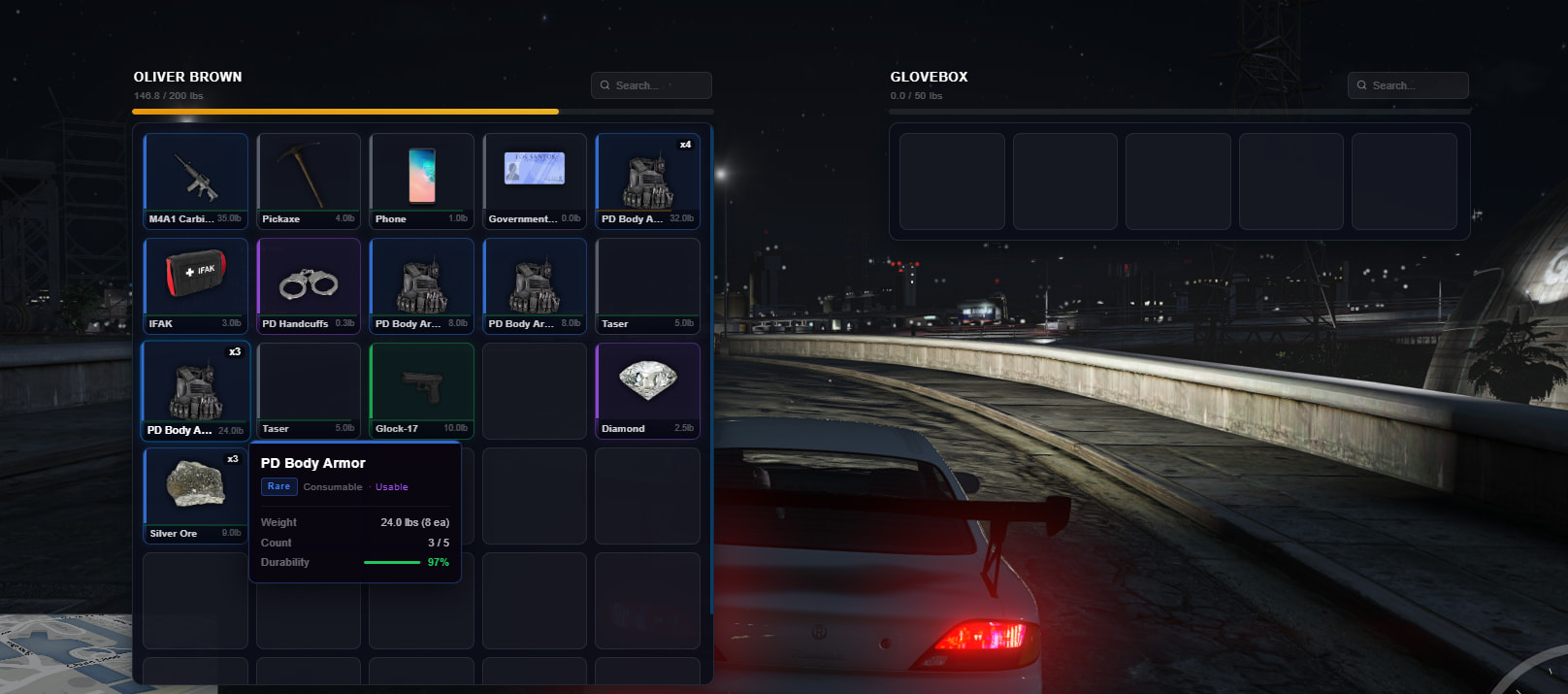Good-looking inventory with a crafting system for players and businesses.