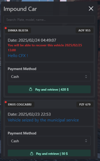 - Create garages/impounds in-game or in DefaultGarages