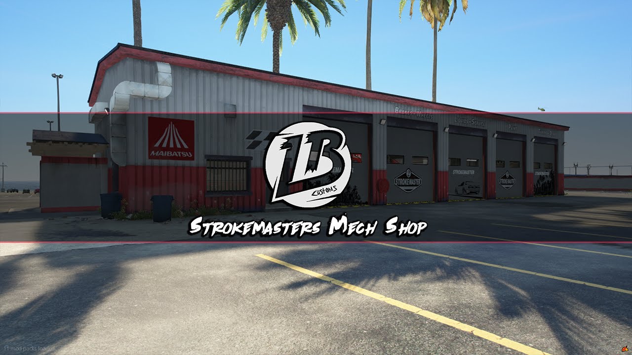 With great pleasure, LBC presents to you. Strokemasters Mech Shop, located North of the Vespucci Pier. This project has been an ongoing project for the last year, and it was definetly worth the wait! Fitted with tons of custom props, cool features, and a even a Holiday Theme!