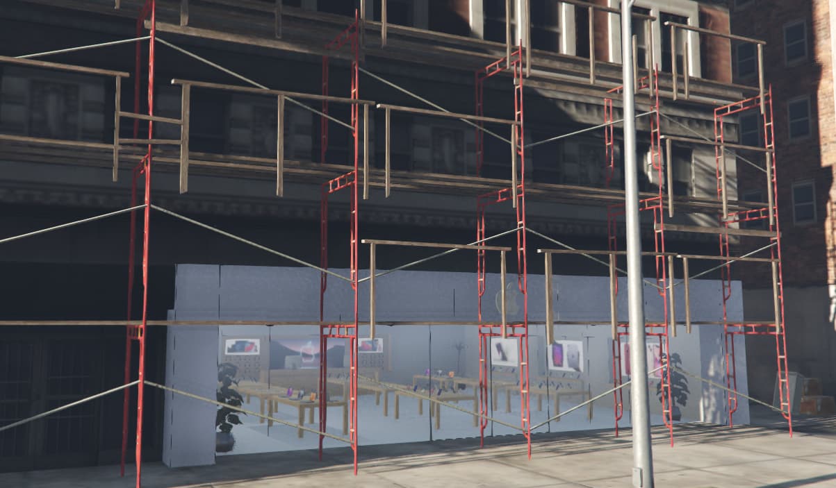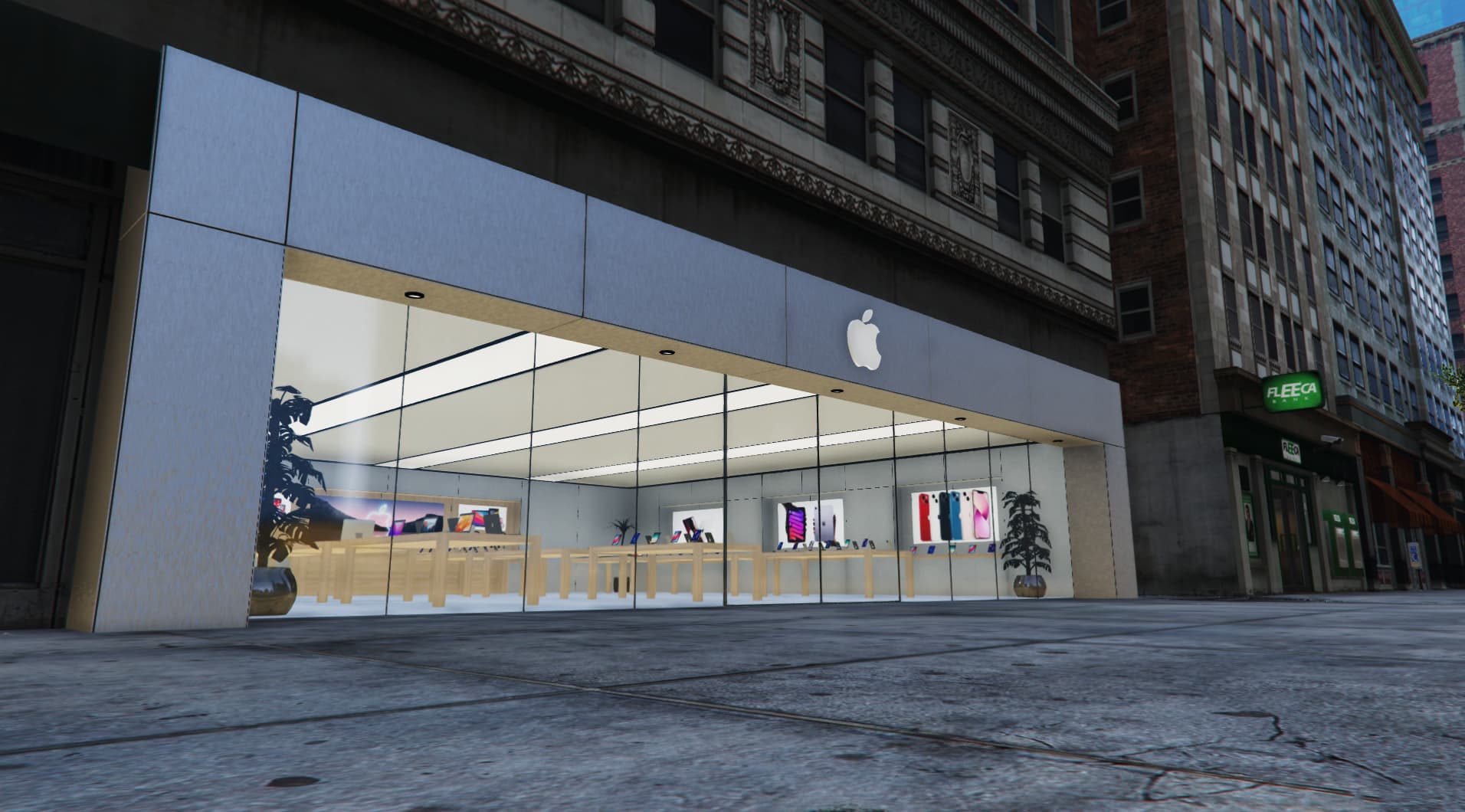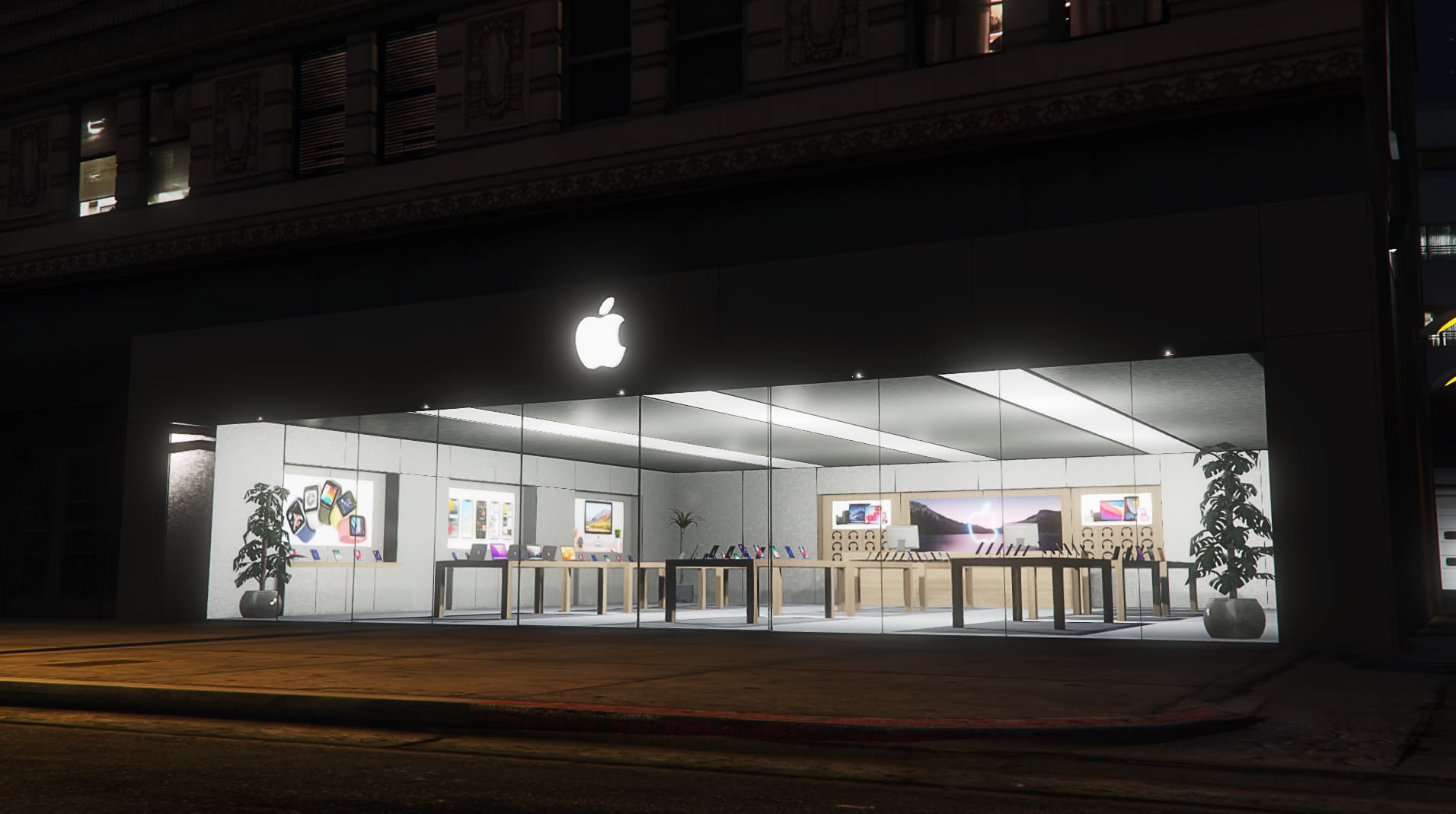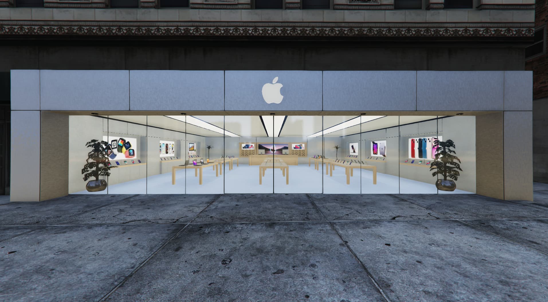 Looking pretty clean although the Doors is a bit big to open up like that and the Vibe of the Textures if a bit to old for a apple store in my opinion. Also the Exterior vibe could be a boot nicer with some glowing apple logo and only glass or something, and its looking pretty dark inside.