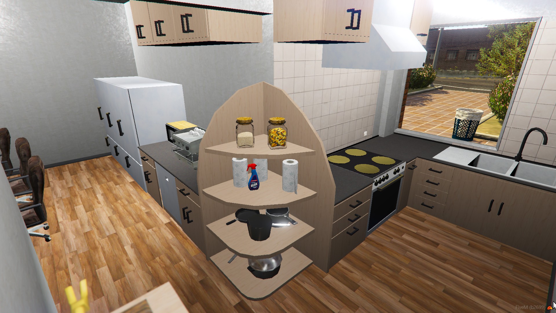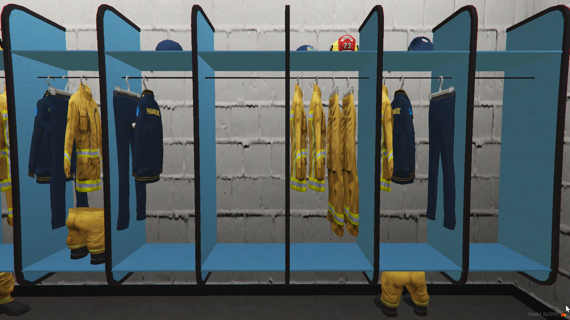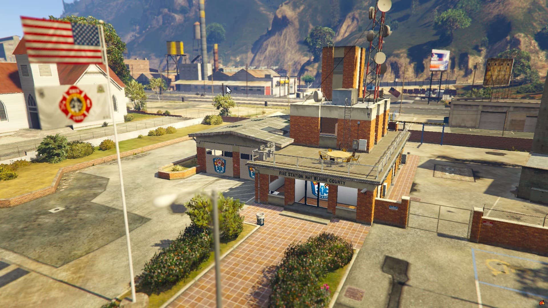The fire station in the north of Blaine County is located in Paleto Bay with space for 3-4 vehicles (2 in the bay and 1-2 under the carport). Furthermore, the building contains everything that a roleplayers heart contents, like a living and cooking area with custom modeled props, a wildland and diving storage, a locker, an EMS cabinett and a lot more. Textures can also be adjusted in a .ytd file with little modding experience.