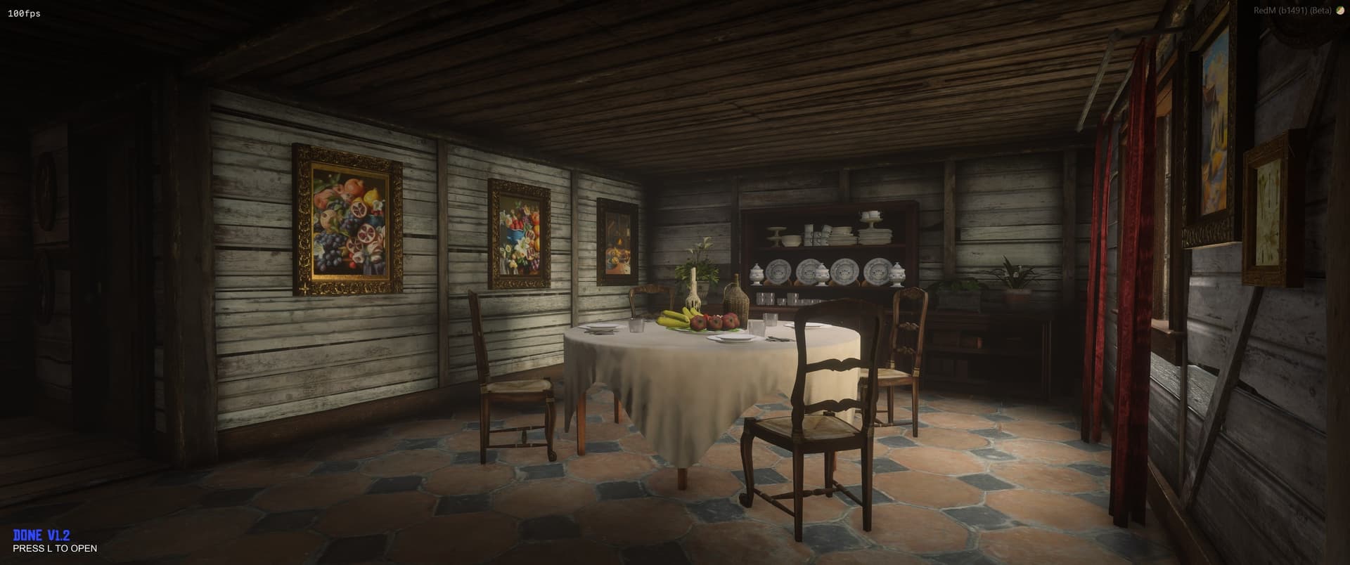Although it is small, it has all the comforts that a redm player on a roleplay server could want. We also added some trees to add more color to the area and a chicken farm!