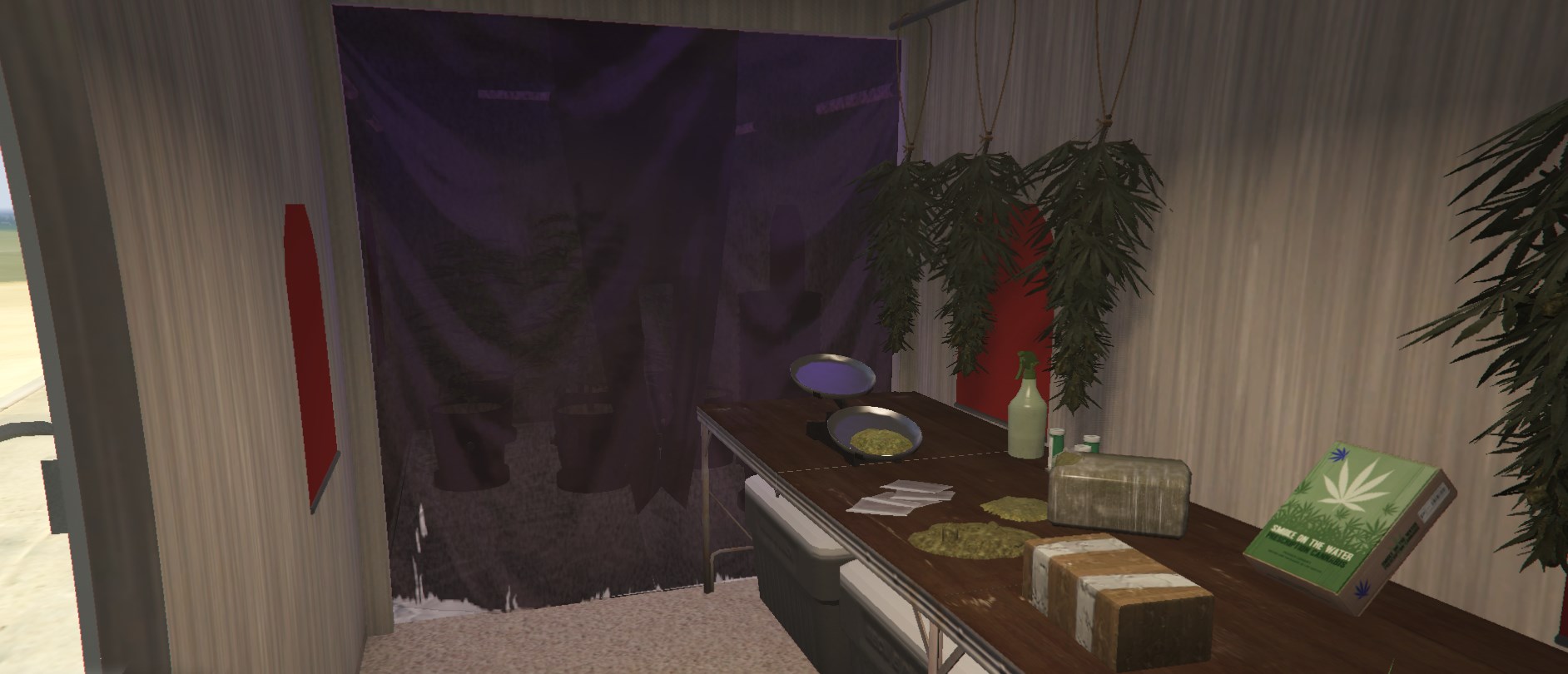 The interior depicts a weed plantation inside a camper trailer. It is placed in 45 different locations. You can have all of them at once or just a selected one. To keep only one location, go to the video on YouTube, choose the location (displayed in the top-left corner), for example location 36, and delete all location folders except for location36