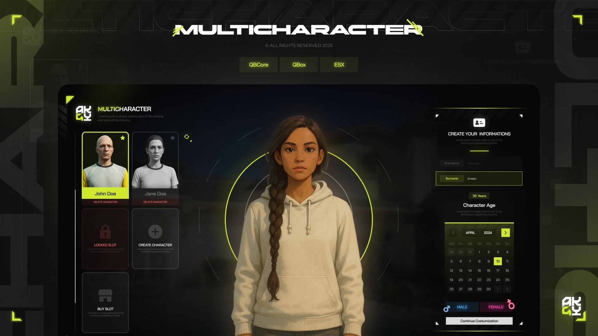 [QB/QBOX/ESX] Multicharacter | Character Voice, Animation, Levels & Tebex Slot Sales | ak4y-multicharacterv2
