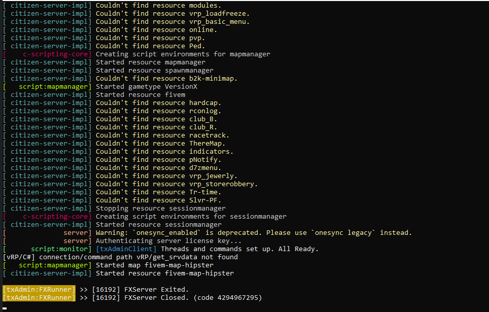 when i start my five m server vrp it says at the end “FXSERVER EXITED” “FXSERVER CLOSED”