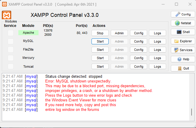 Is there a diffrant port i can use with MySQL on XAMMP