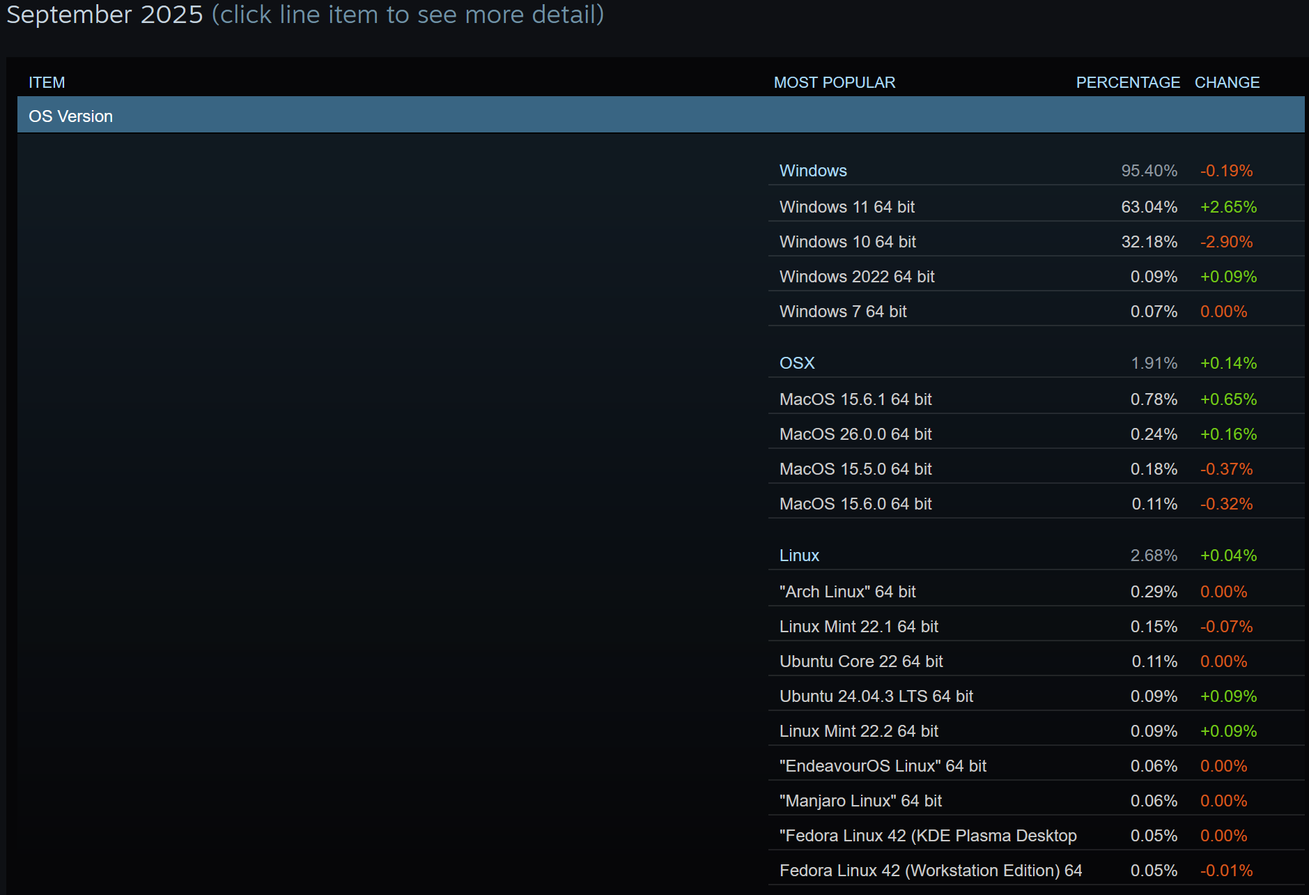 For those who realize that numbers are important, here’s percentage by OS from Steam’s latest survey: