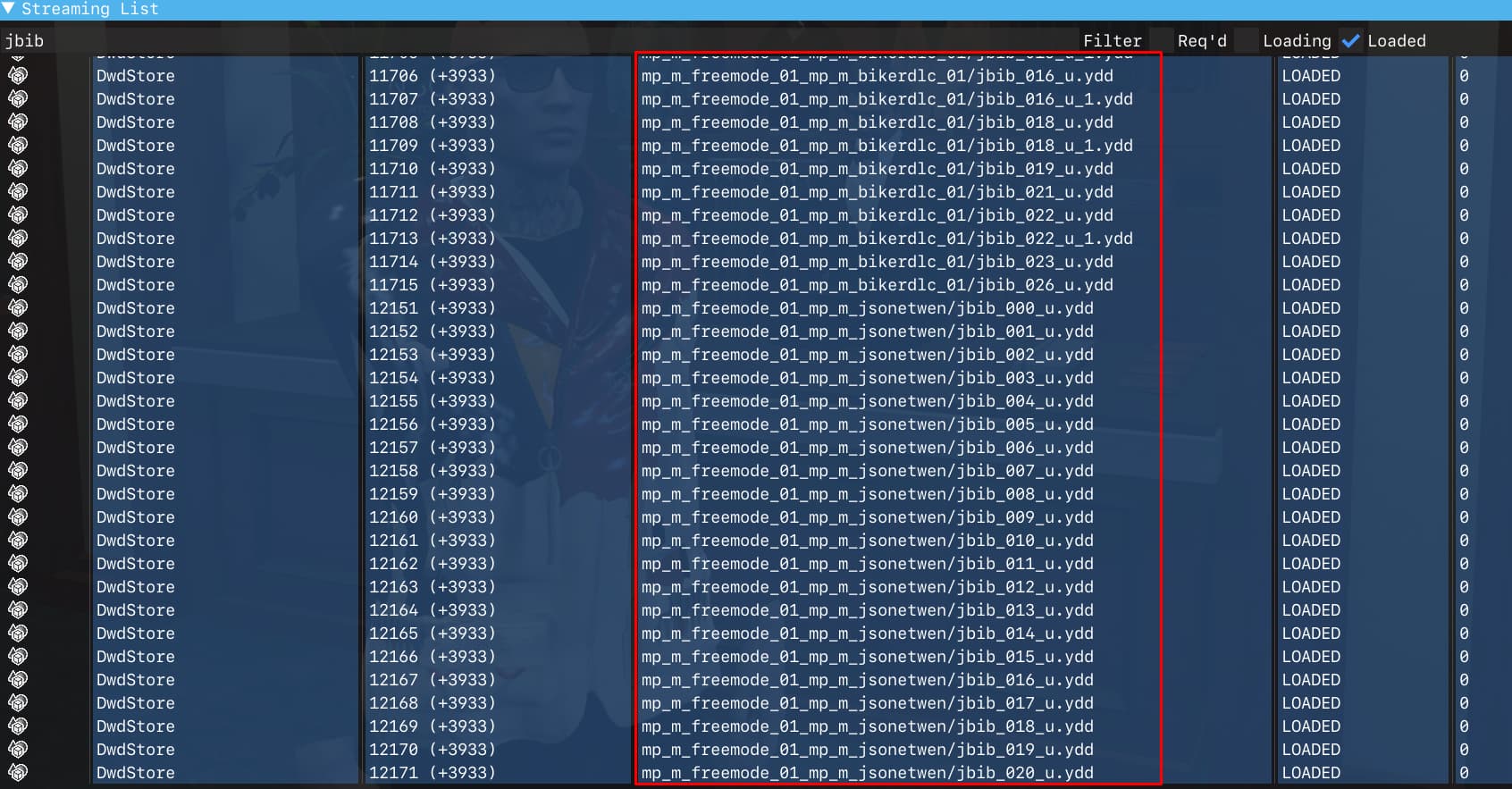 Use case in my current scenario is working with multiple asset packs that some are encrypted and some are open. So using openIV to identify clothing is impossible. So what I noticed was when using IFR and streaming list, going trough clothes I can see for a split seccond what ydd is being requested, to see the ones I want to remove.