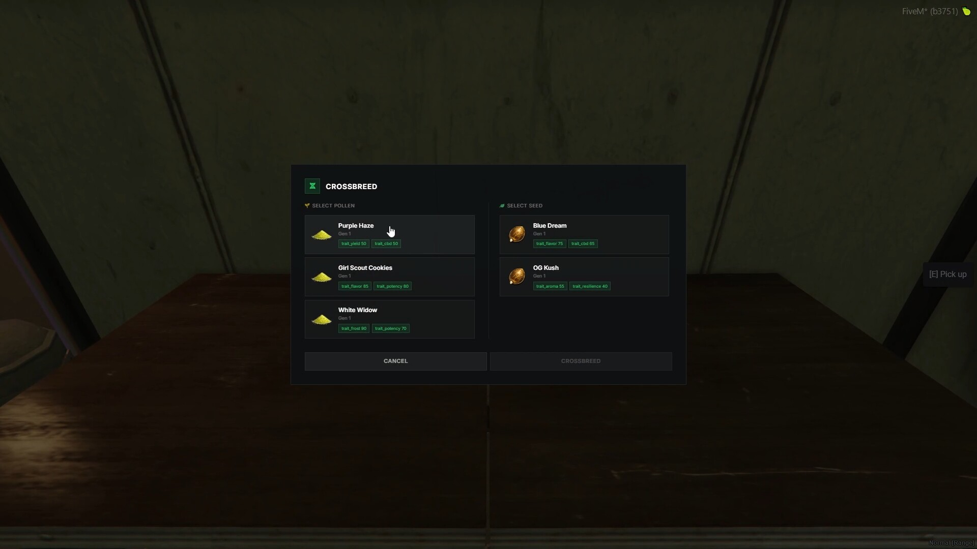 Crossbreeding System — Collect pollen from male plants and combine it with seeds at a weed table to create hybrid offspring with new genetic combinations.