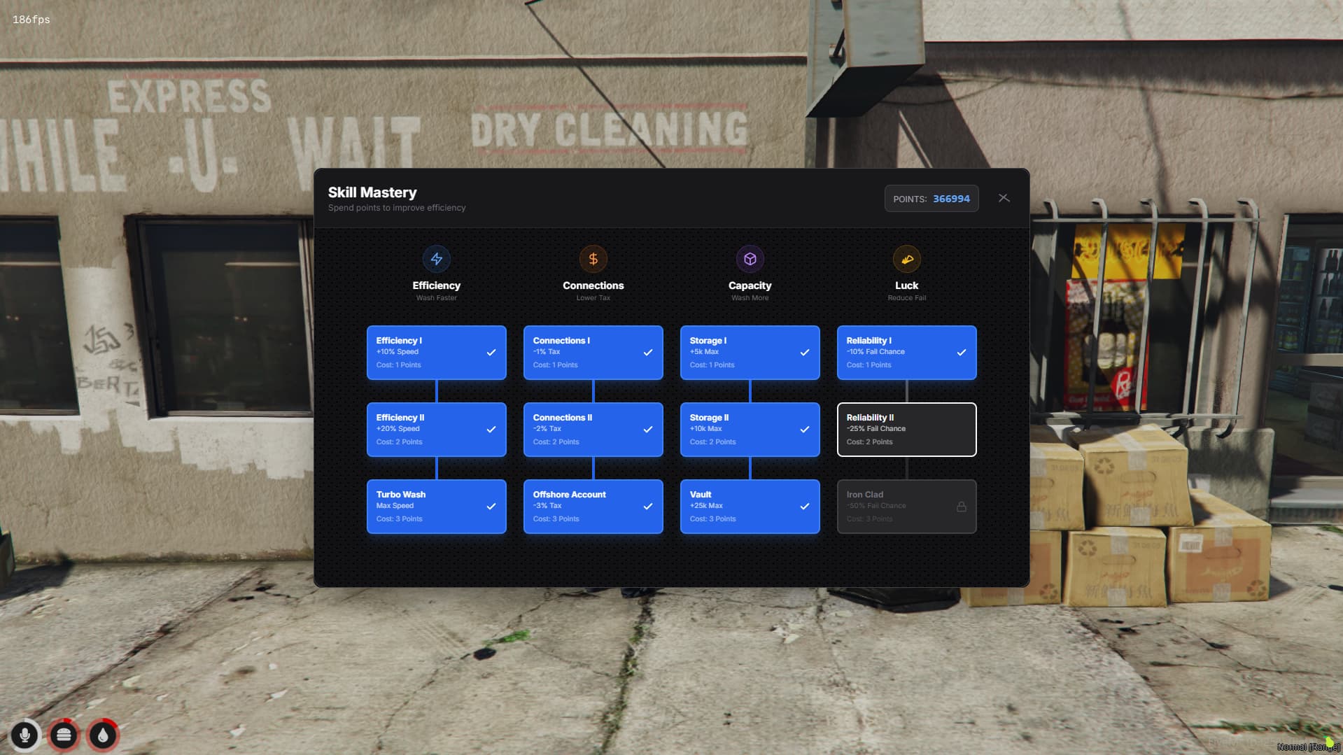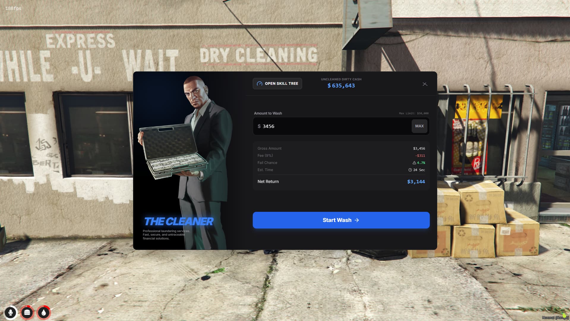 Persistent Laundering – Active washes are saved to the database, ensuring players never lose their money during server restarts or crashes.