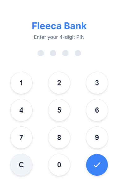 ATM PIN Security System – Secure 4-digit PIN authentication for ATM access with visual numpad interface, ensuring only authorized account holders can access their funds remotely.