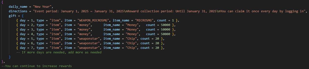 This is an advanced daily login reward system. Its feature is that multiple activities can be added at the same time for players to receive rewards. Different activity descriptions can also be set for different activities, and the settings are simple and clear.