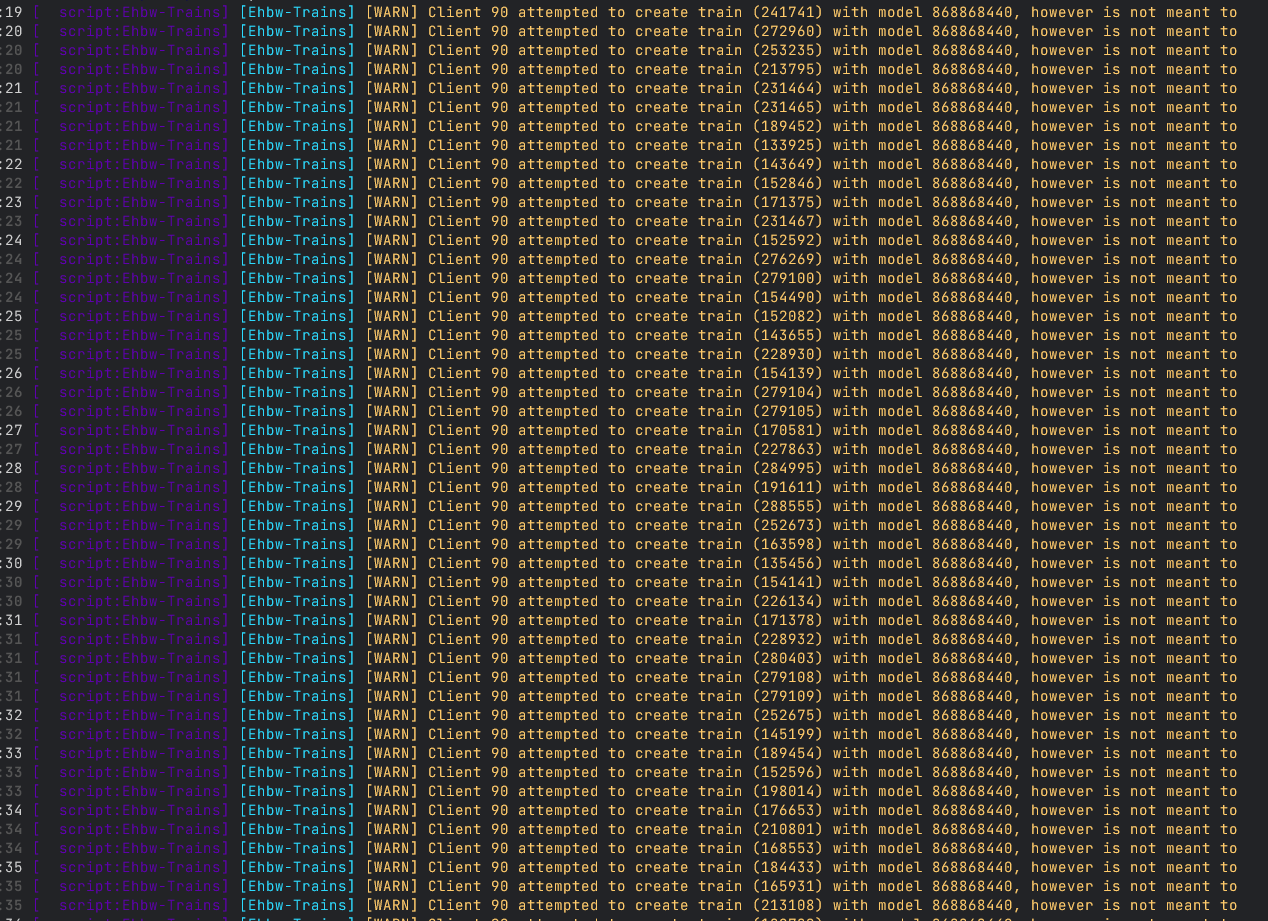 Been having train artifacting (like where a container cart is moving without having a engine attached to it). Similar to other train scripts ive tried… however, they are admin removable (dv), which other trains scripts weren’t so im able to clear the rail pretty easily. This seems to happen once we hit 90+ players on server.