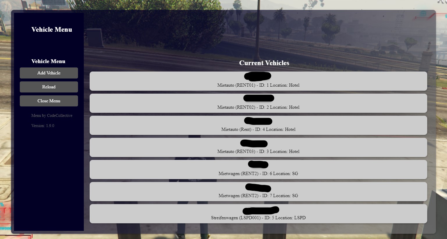 - Adding vehicles: Via a user-friendly menu you can add new vehicles to the script and they are automatically saved in the database and in the Config.lua. This allows you to dynamically expand the vehicle list.