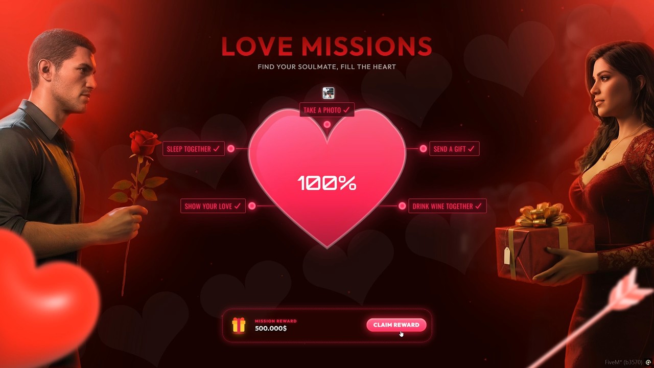 What’s New in the Valentine’s Update? Stunning Interactive Valentine’s HUD: A beautiful, dynamic user interface that tracks the couple’s progress. It features a real-time countdown timer, a filling “Heart” progress bar, and a live checklist of romantic tasks.