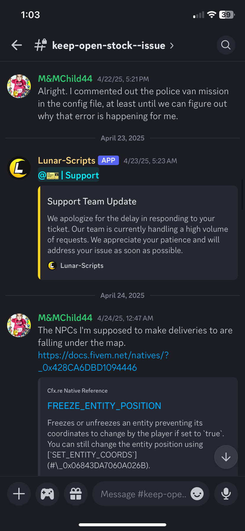 - You can either buy the supplies (price can be configured) or start a random resupplying mission.