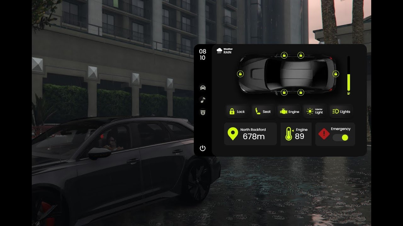 The player will show the cover of what you are listening to. Once it is playing, you can exit the menu and the vehicle and it will continue to play.