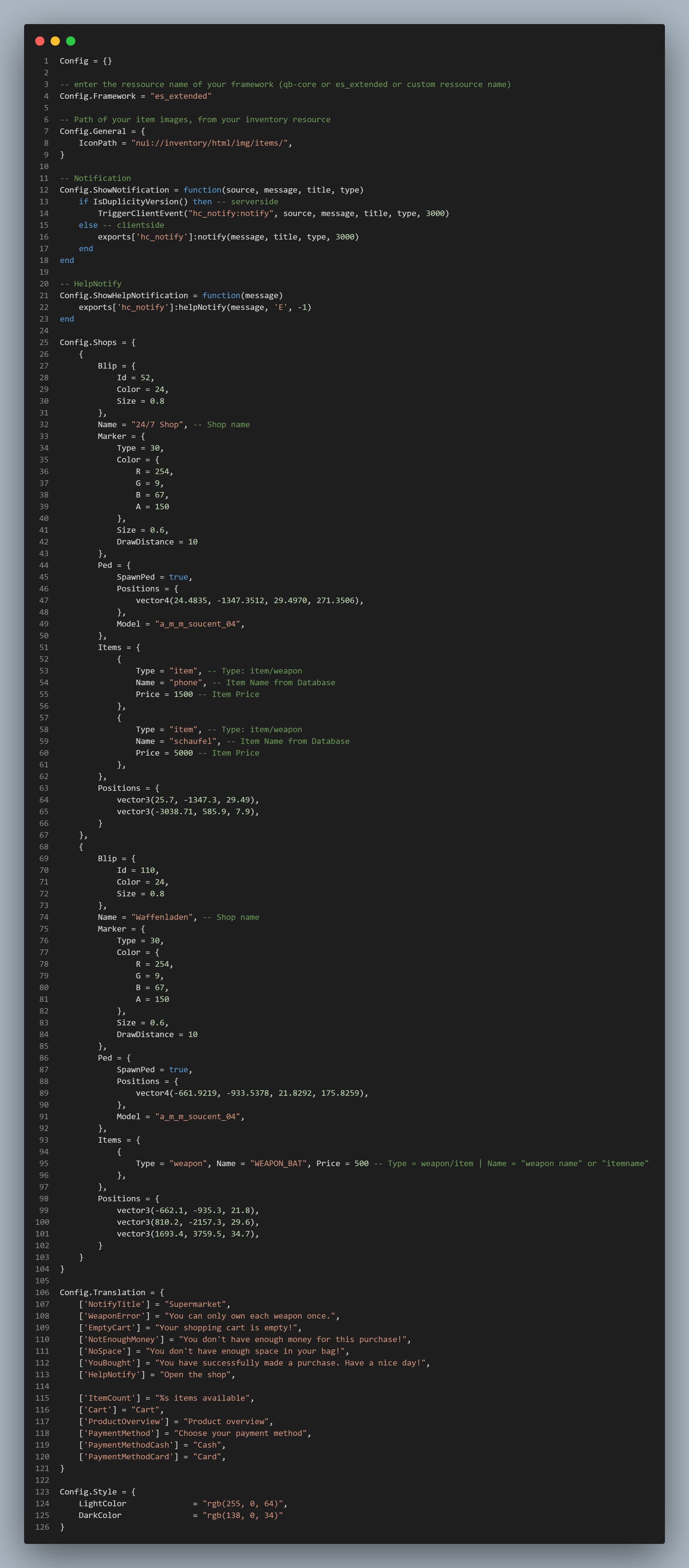 Whether itβs a supermarket, hardware store, or even a gun shop, the system is highly dynamic and versatile. Create every shop that you need for your FiveM Server.