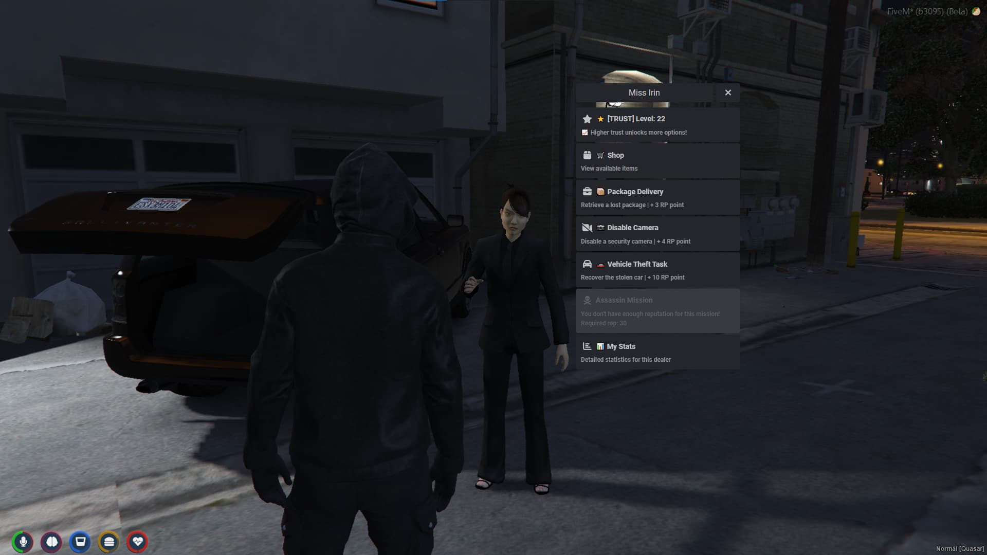 Create a living underworld economy where every dealer, mafia boss, or shady contact has unique personalities, schedules, and loyalty systems. Repu System transforms your criminal world into an evolving reputation-based network — meet dynamic NPC dealers, earn trust (RP), unlock exclusive items, and complete dangerous missions, all driven by your actions.