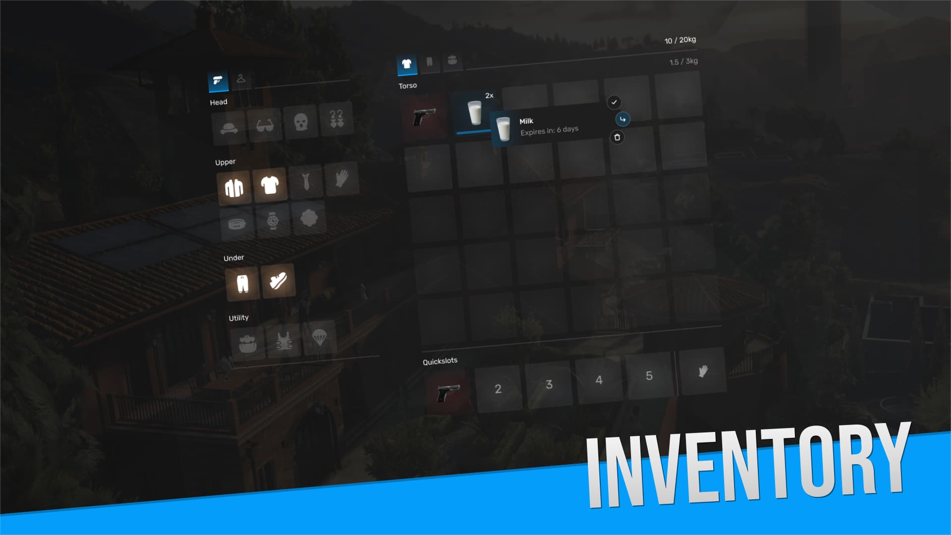 - Shops: Contains stores and clothing stores which are built into the inventory