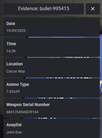 - Bullet Shell Evidence