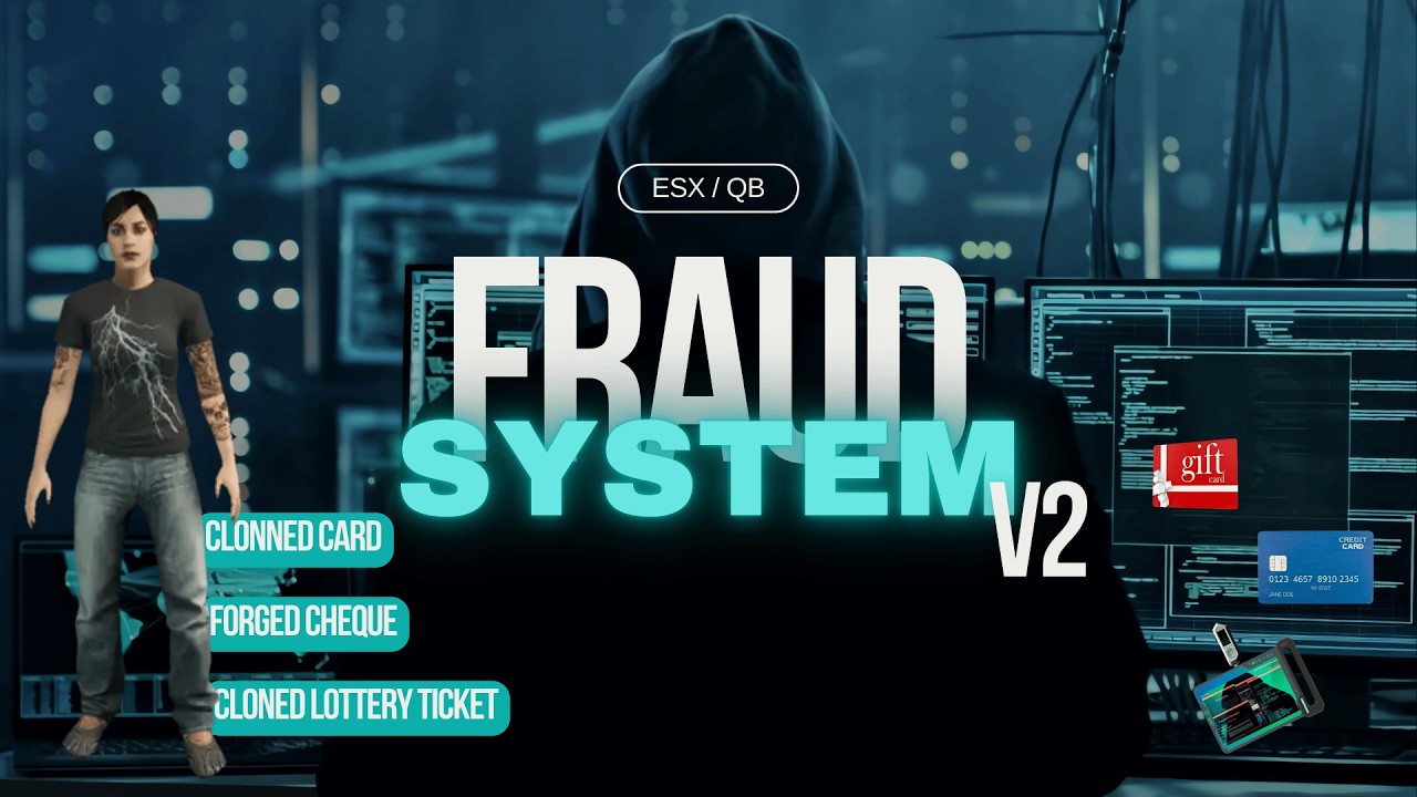 Fraud System is a fully customizable gameplay script that adds realistic fraud mechanics to your RP server. Players can engage in card scams, cheque cashing, laundering, and more, with configurable success chances and optional police integration.