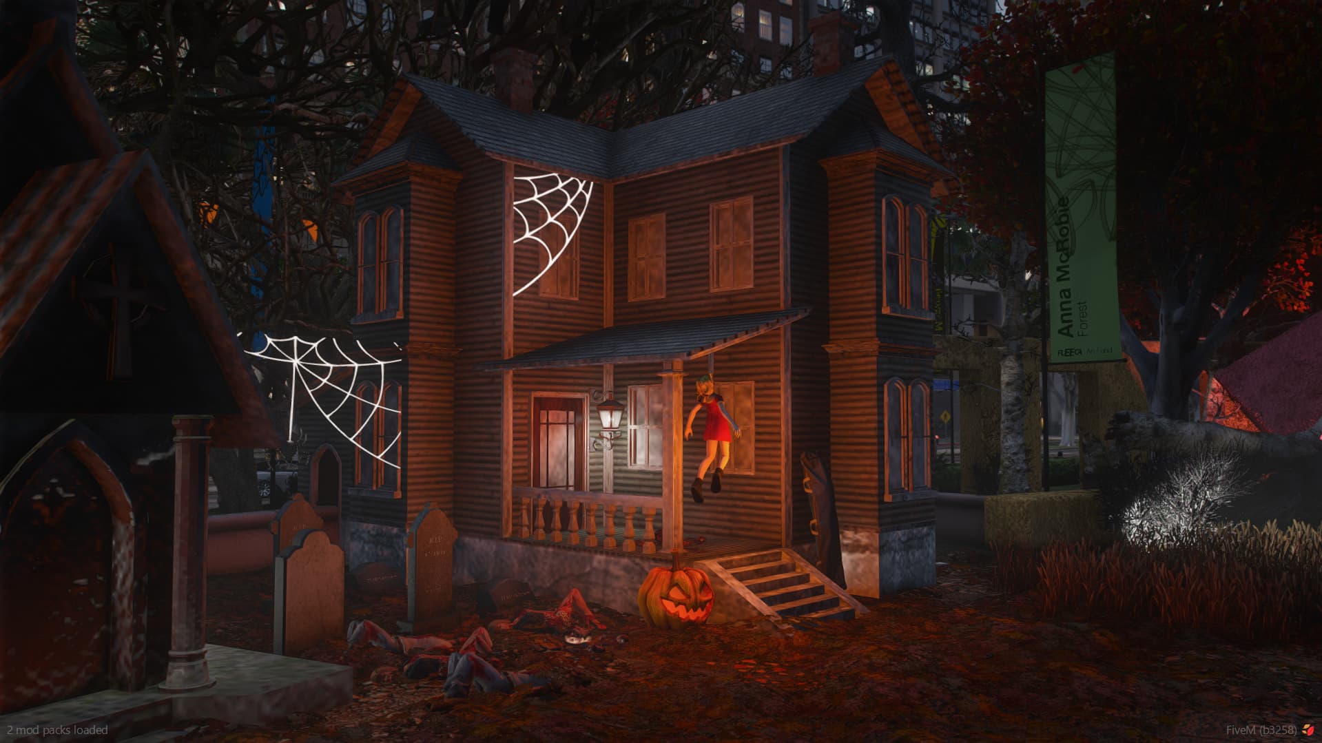 Props Addon: Halloween decorations, pumpkins, spider webs, skeletons