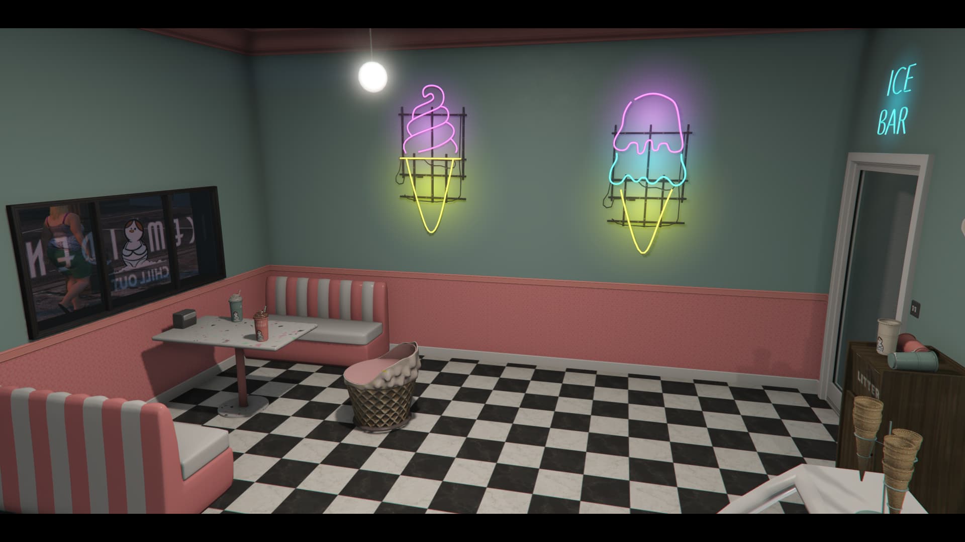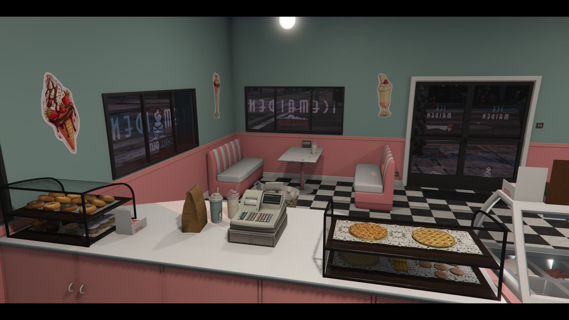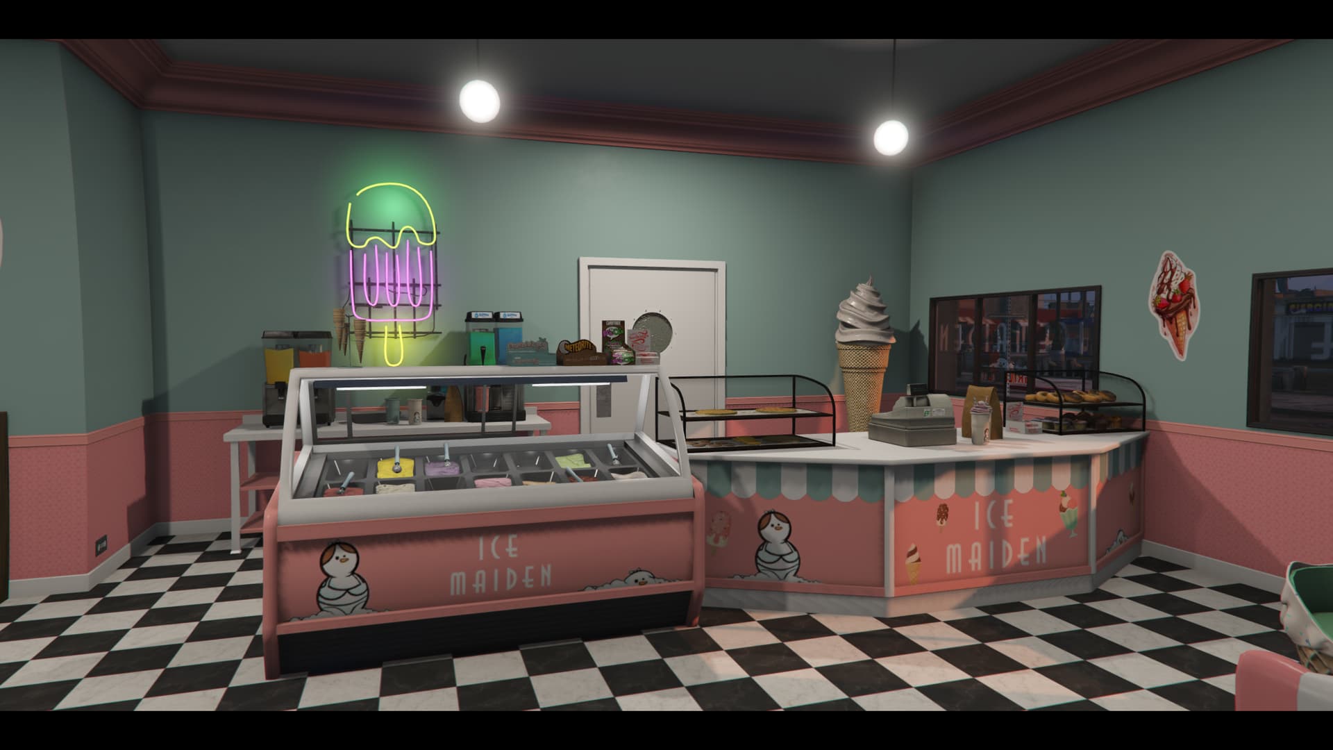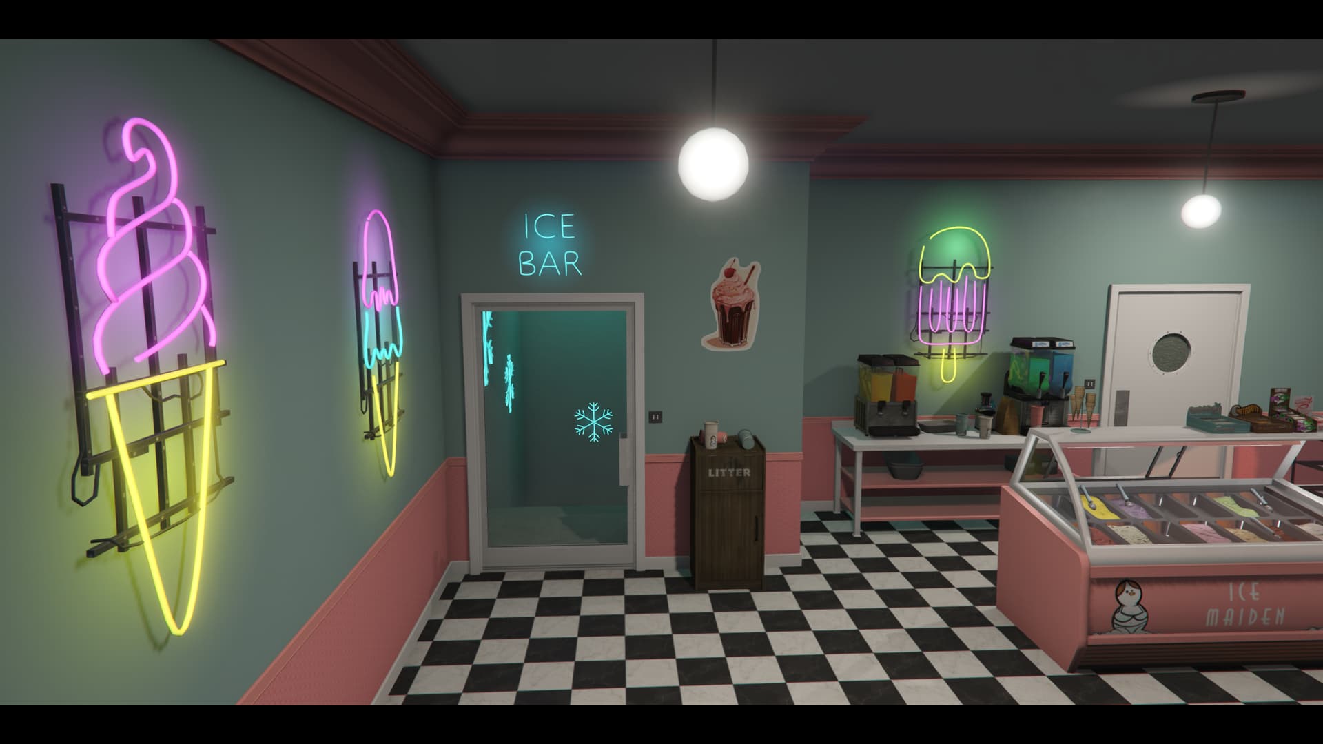 Welcome to Ice Maiden, a charming ice cream shop just steps away from the beach, perfect for cooling off under the scorching Los Santos sun. But don’t stop at the surface… Head down to the basement to discover the incredible Ice Bar, a unique spot where everything, from the furniture to the glasses, is sculpted from ice. The frosty atmosphere and crystal-clear décor make it the ideal place for an extraordinary experience!
