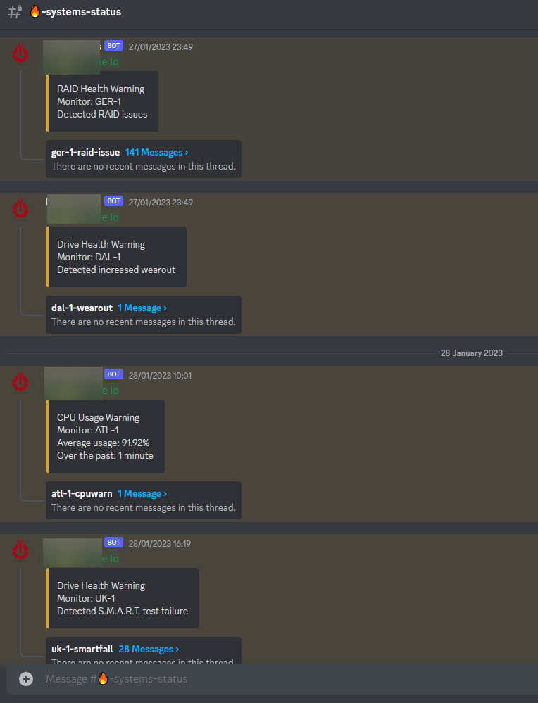 - Using tools to confirm uptime, check CPU, RAM, Disk, Network & even RAID information just from a glance ensures that infrastructure is running as intended, with immediate investigation into any problems reported straight to us from webhooks.