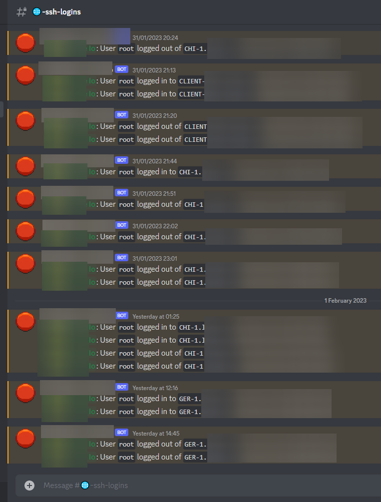 - SSH logging and backup reporting comes in via different streams which are organised in channels for ease of looking through logs, with proactive checks being performed frequently to discover any discrepancies in the data.