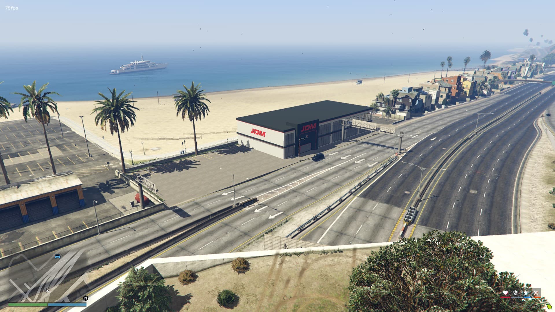 We present the new mechanical workshop on LS beach where an uninhabited plot of land previously stood. This LED workshop has great details, and even a place for you to simulate and role-play for mechanics to make Dyno adjustments. It also has an office, a changing room and a meeting room.