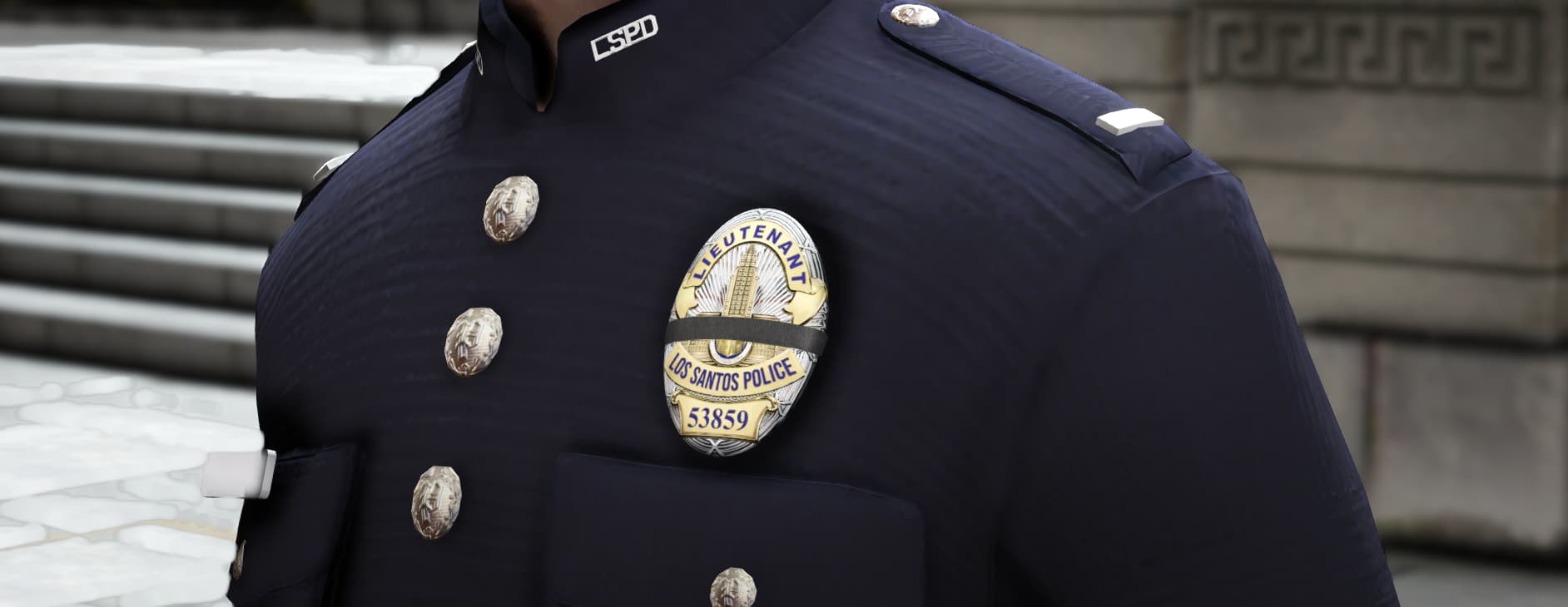 - Badge Textures - features 18 textures covering all ranks from Police Officer to Chief of Police, each with an optional mourning band.